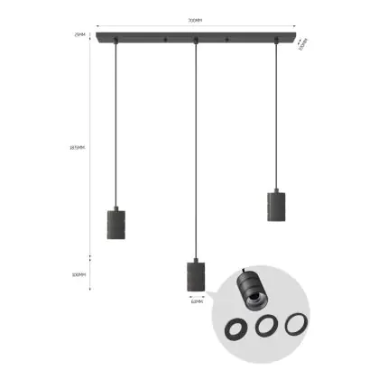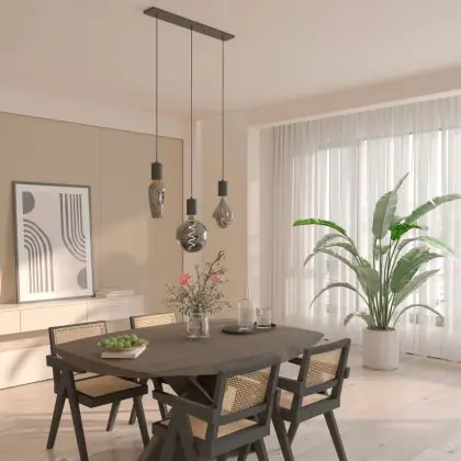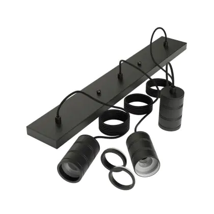 Calex Retro Suspension Luminaire Cordset Rectangulaire Métal Noir |incl. câble 2 Mètre - Convient pour 3xE27