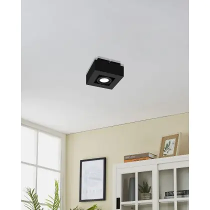 Eglo Plafond Spot Mendoza Acier Noir 4.7W 345lm - 830 Blanc Chaud | Dimmable - Convient pour GU10