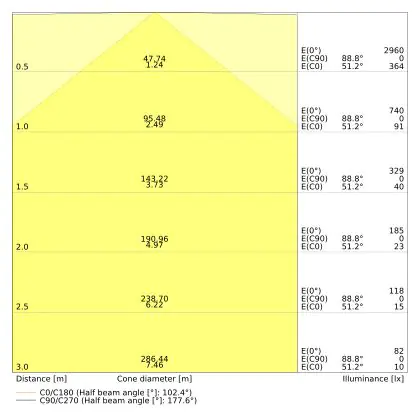 ![]() De kleurcode is een combinatie van de kleurweergave (CRI) en lichtkleur (Kelvin). Het eerste getal is de kleurweergave (1 = zeer slechte kleurweergave, 9 = maximale kleurechtheid). Het tweede en derde cijfer betreft de lichtkleur. Een lamp met kleurcode 830 heeft bijvoorbeeld een goede kleurweergave en straalt een warm wit licht uit (3000K), waar een lamp met de kleurcode 940 een uitstekende CRI heeft en een koel wit licht (4000K) uitstraalt. |