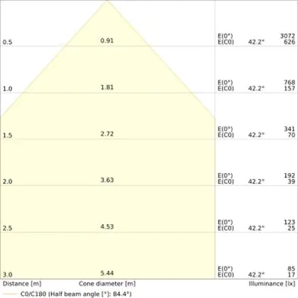 Un angle de diffusion est également appelé angle de rayonnement et indique l'angle du faisceau lumineux provenant d'une source lumineuse. Plus l'angle de diffusion en degrés (D) est petit, plus le faisceau est étroit.