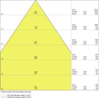L'indice d'éblouissement unifié (UGR) indique dans quelle mesure la lumière d'un produit est éblouissante. Cette valeur varie d'une application à l'autre et doit être conforme aux normes européennes (EN 12464-1). Une faible valeur UGR signifie un faible facteur d'éblouissement. Pour les bureaux et les écoles, l'éclairage avec une valeur UGR < 19 est obligatoire, et pour les espaces ouverts, une valeur UGR < 22 est obligatoire.