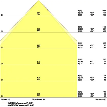![]() Le code couleur se compose de l'indice de rendu des couleurs (IRC) et de la température de couleur (Kelvin). Le premier chiffre indique le rendu des couleurs (1 = très mauvais rendu des couleurs, 9 = meilleure authenticité des couleurs). Le deuxième et troisième chiffre indiquent la température de la couleur. Exemple : Le code couleur "830" indique que la lampe a un bon rendu des couleurs (8) et une couleur de lumière blanche chaude (30 = 3000K). |