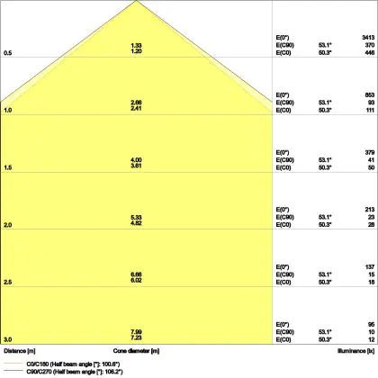 ![]() Le code couleur se compose de l'indice de rendu des couleurs (IRC) et de la température de couleur (Kelvin). Le premier chiffre indique le rendu des couleurs (1 = très mauvais rendu des couleurs, 9 = meilleure authenticité des couleurs). Le deuxième et troisième chiffre indiquent la température de la couleur. Exemple : Le code couleur "830" indique que la lampe a un bon rendu des couleurs (8) et une couleur de lumière blanche chaude (30 = 3000K). |