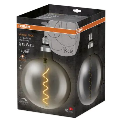 Osram Vintage 1906 LED E27 Globe Filament Smoke 200mm 5W 110lm - 818 Blanc Très Chaud | Dimmable - Équivalent 25W